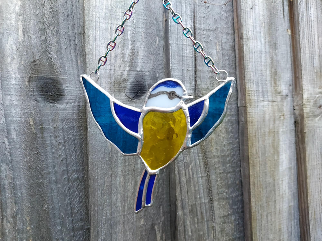 Hand cut and assembled using the Tiffany method of copper foiling in two sizes,10x12cm and 11.5x14cm approximately.
