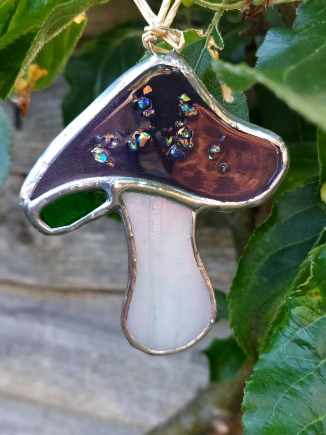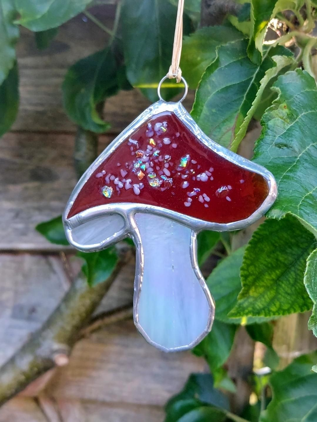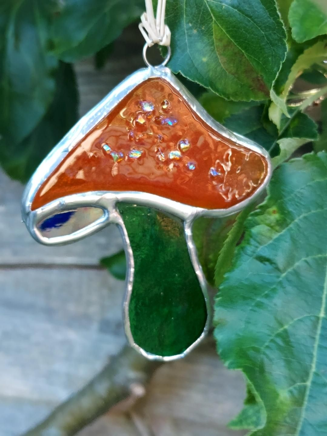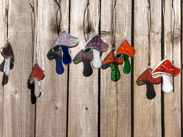 A fusion of stained and fused glass, these magical fairy Mushrooms can brighten up any room.